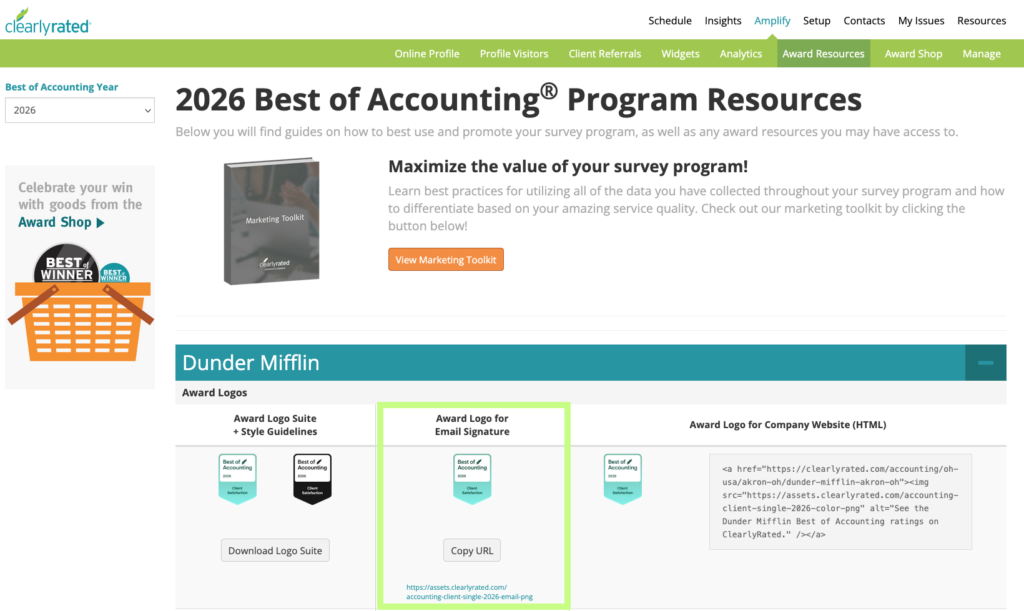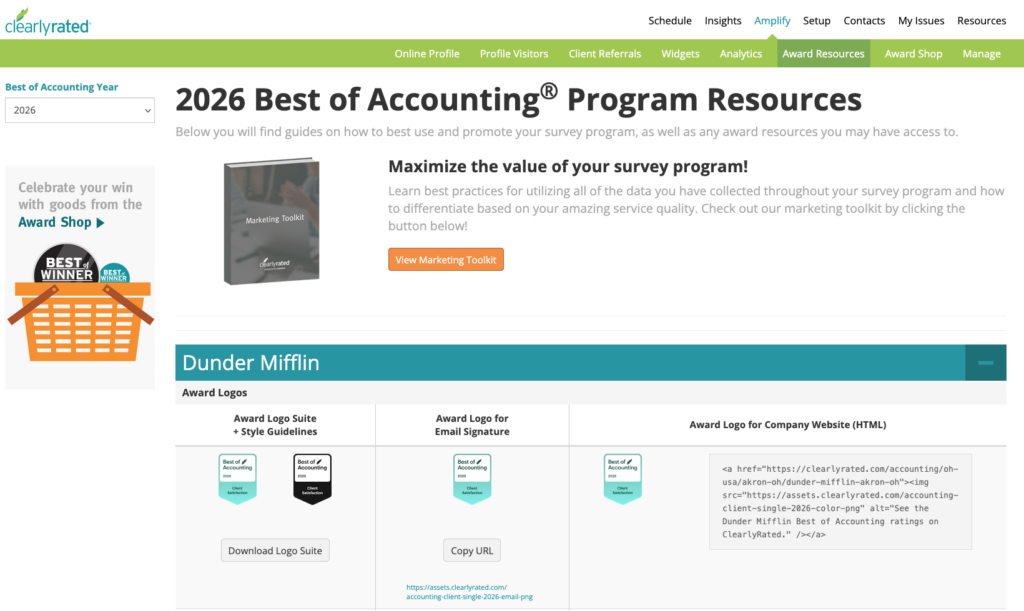 Your company has earned a great achievement. We encourage you to leverage your success by using the Best of Accounting Award to display your company's commitment to remarkable service. The Best of Accounting Award logos may be displayed in multiple applications (your website, LinkedIn, email signatures, social media, print) as a way to advertise your achievement and show your company's commitment to delivering exceptional service.
